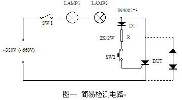现场人员最需了解器件的阻断电压能力和晶闸管的门极触发性能。以下为推荐的简易检测电路及方法。